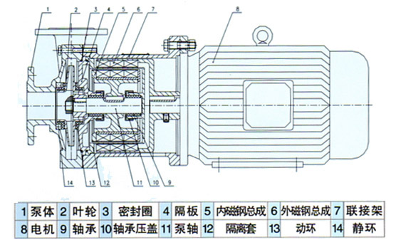 CQ型工程塑料磁力驅動泵(簡稱磁力泵),是應用現代磁學原理,將永磁聯軸器的工作原理用于離心泵的新型產品,磁力泵以靜密封取代動密封,使泵的過流部件處于完全密封狀態,徹底解決了其它泵的機械密封無法避免的跑、冒、滴之弊病。磁力泵選用耐腐蝕、高強度的工程塑料、鋼玉陶瓷、不銹鋼作為制造材料,因此它具有良好的抗腐蝕性能,并可以使被輸送介質免受污染。